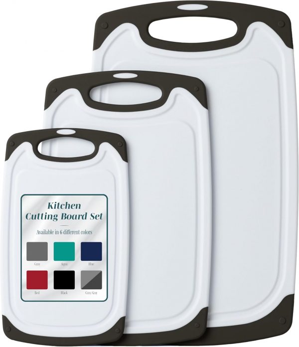 Cutting Boards for Kitchen – BPA-Free Chopping Board – Different Sizes & Non Slip Handles – Reversible, Large Cutting Board Set – 3-Pack Black