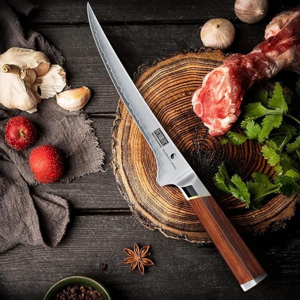 - 【Razor-Sharp Boning Knife】The fish fillet knife is repeatedly hand-polished by expert bladesmiths. The razor-sharp 15° double-bevel edge and precision-tapered tip deliver unmatched cutting accuracy and smooth performance for poultry, meat, etc